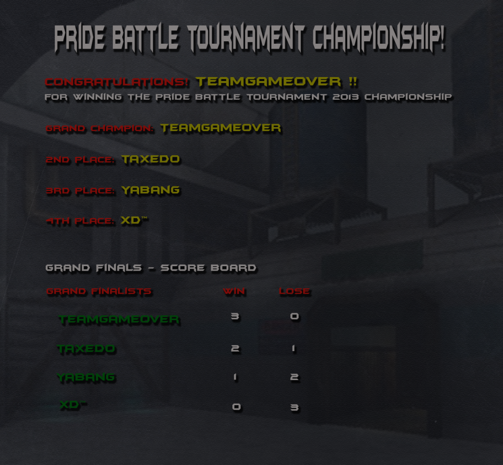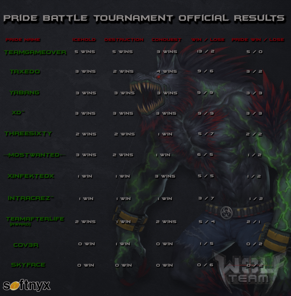 Attained First Place, representing "teamGameOveR" in Softnyx WolfTeam's Pride Battle Tournament (5 VS 5 | No Cash) [2013]