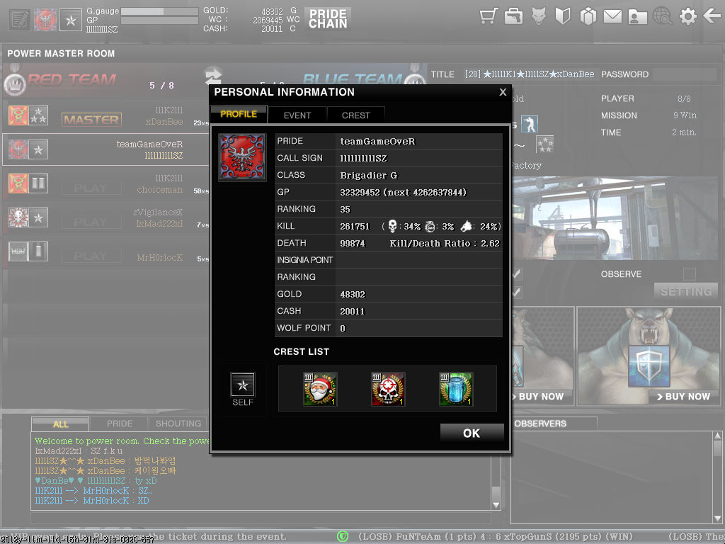 I was previously a competitive WolfTeam player that goes by the alias "llllllllllSZ" that played for/with teamGameoveR, lllK2lll, Velocity and Taxedo. I topped the Singapore rankings back then from 2011 to 2013 and I officially stopped gaming entirely in 2015 as I wanted to put a stop to my gaming addiction back then.